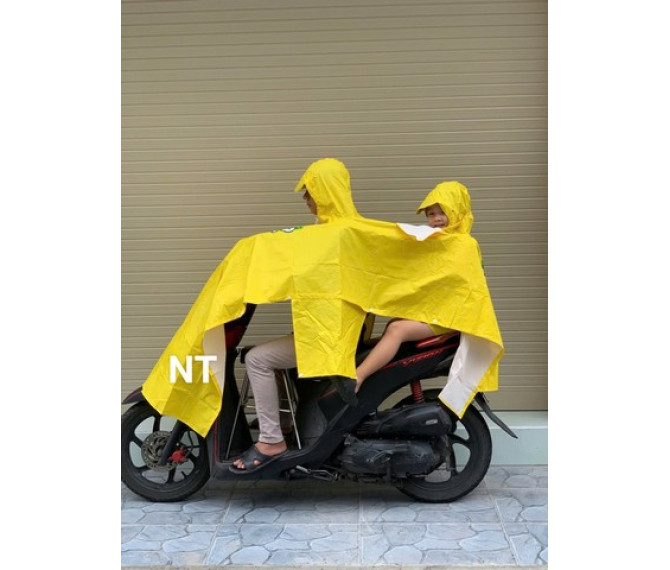 79 ngàn 1 cái áo mưa 2 đầu vải dù màu vàng, quà tặng từ C 2, dành cho 2 người đi cùng xe máy khi có mưa