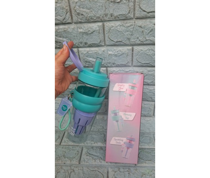 29 ngàn 1 bình nước thủy tinh bọc nhựa hồng trái tim xinh xắn, dung tích 260ml bình có ống hút và nắp bật tiện lợi ..