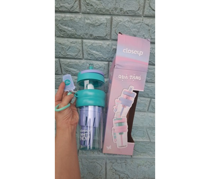 Bình nước dung tích 1 lít có thể treo hay xách tay, có ống hút, có bộ lượt đi kèm, dễ dàng vệ sinh và rất tiện lợi khi đi học, công tác, picnic hay đi tập gym, quà từ Closeup