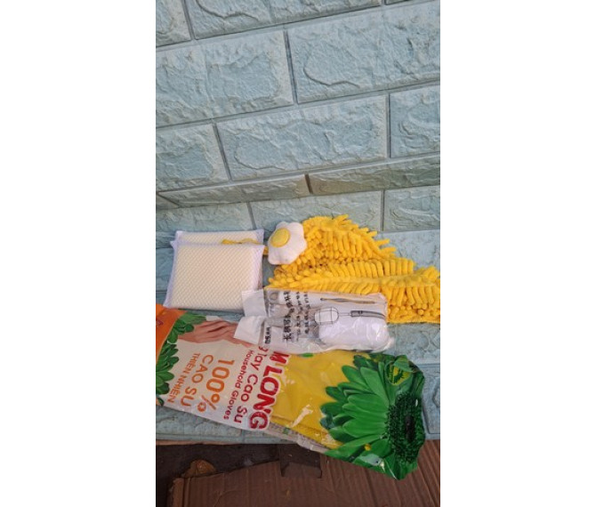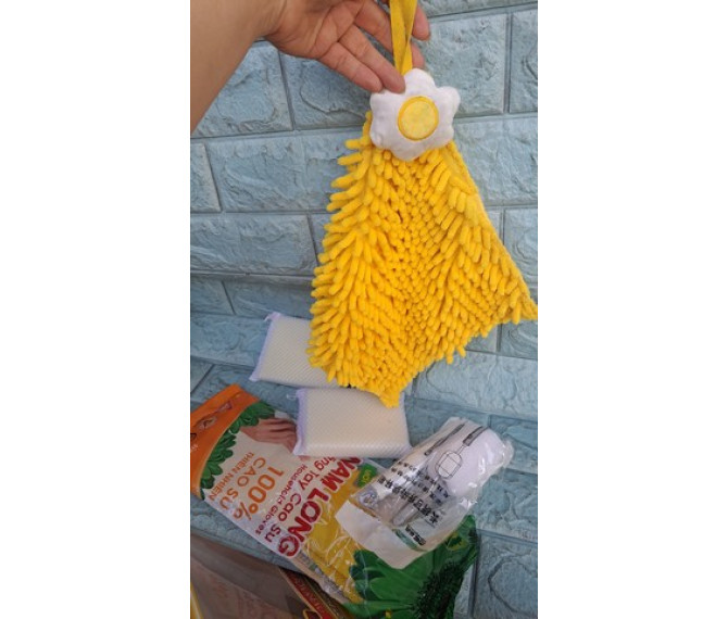 55 ngàn 1 bộ quà tặng từ Sunlight gồm 5 sản phẩm 1 khăn treo lau tay, 2 miếng rửa chén có móc treo tường, 1 cặp găng tay dài bằng cao su để rửa chén và 1 cây dụng cụ rửa ly, tách