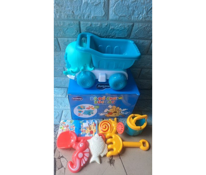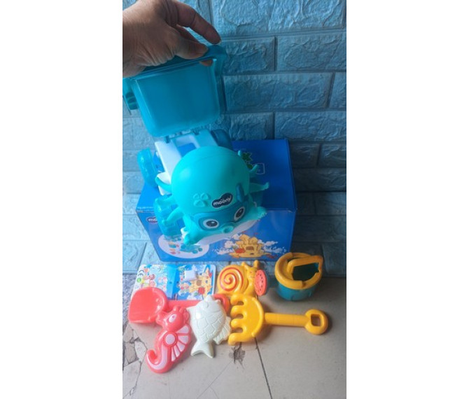 65 ngàn 1 bộ đồ chơi chát bằng nhựa gồm xe hình bạch tuột, 1 cây xúc cát, 1 cây cào cát, 1 bình tưới nước, bộ 3 khuôn chơi cát gồm ốc sên, cá ngựa, cá biển.
