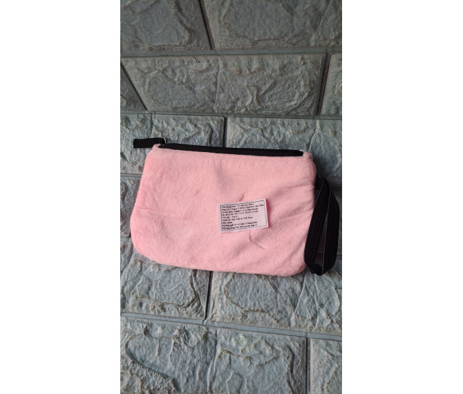 19 ngàn 2 cái ví cầm tay lớp ngoài nhung mềm, lớp trong vải nylon, ví có dây đeo tay, và có dây kéo